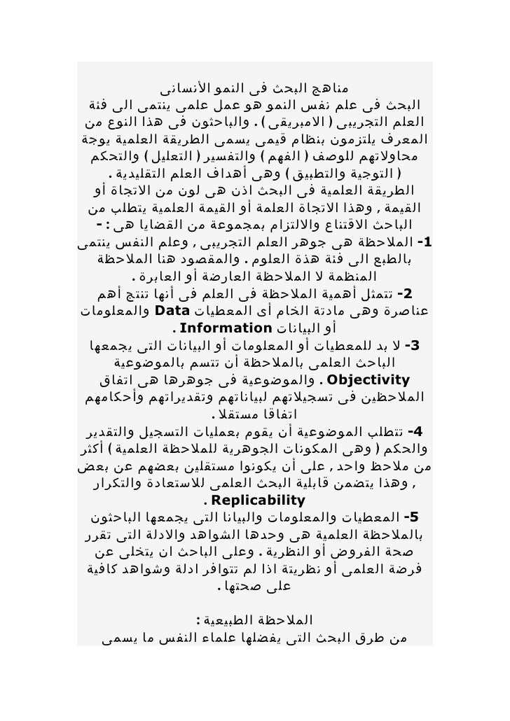 مناهج البحث في علم النفس وخطوات المنهج العلمي في البحث زيادة