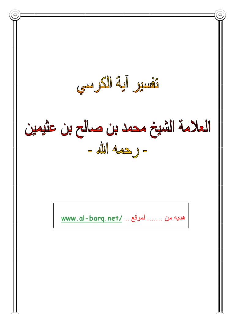 تفسير آية الكرسي فضيلة الشيخ محمد بن صالح العثيمين رحمه الله تعالى The Explanation Of Ayatul Kursi The Greatest Verse In The Qur Aan Shaikh Muhammad Bin Saleh Al Uthaymeen