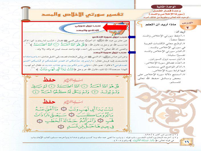 حل تدريبات تفسير سورتي الإخلاص والمسد ص 16 المصدر السعودي